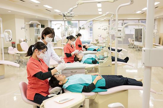 本学では、歯周病・小児・矯正(審美歯科)・口腔外科・高齢者歯科・障がい者歯科などの専門コースを設け、子どもの発育を支えるケア、高齢者の口腔機能維持や口元の審美面でケアなど、ライフステージごとの課題に応えるスキルを習得できます。