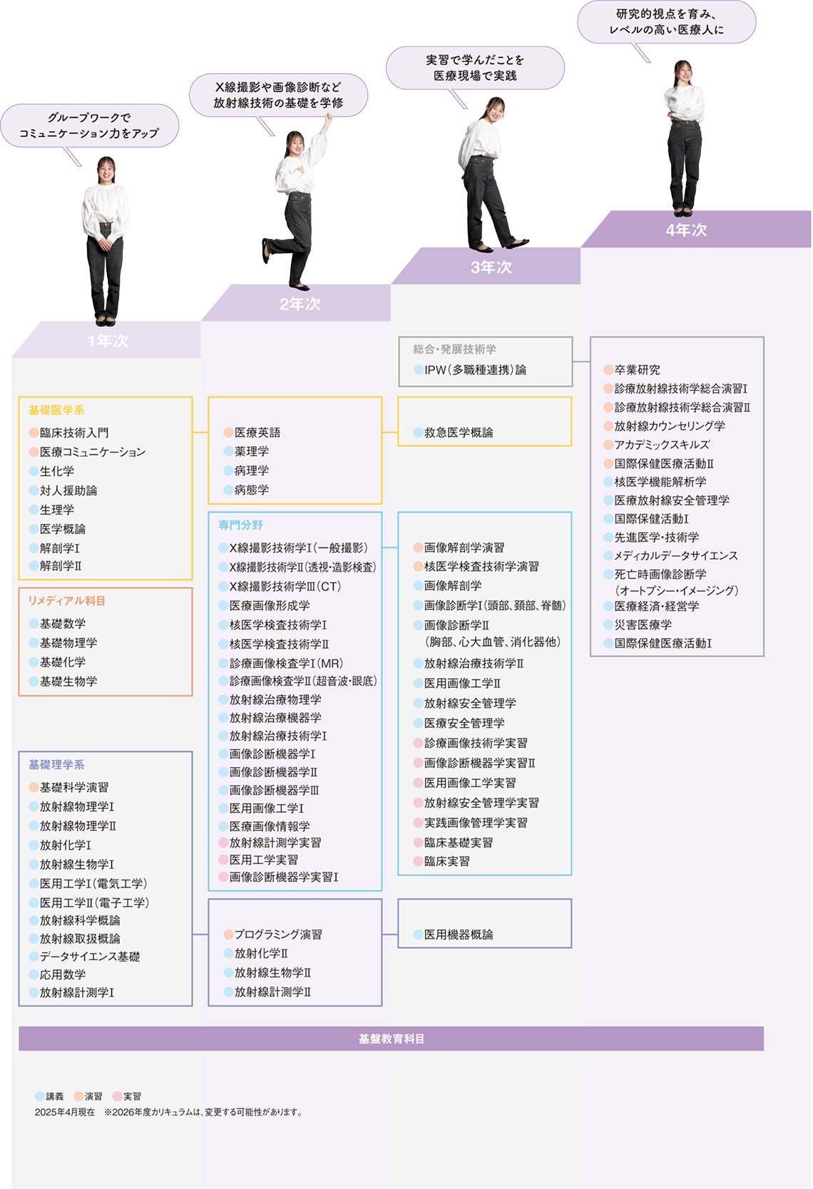 いのちに対する温かい眼差しと高い倫理観を備え、放射線技術学における専門的な知識と技術を持ち、社会に貢献できる専門職業人を育成する。