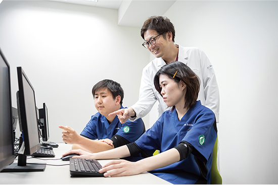 授業で学んだ知識を実習で確認することを繰り返し、理解を深めることが国家試験合格につながります。3年次からは模擬試験とグループワークを定期的に実施します。これによって自分が理解できていない問題を明確にします。また、グループワークで問題を教え合うことを通して、知識の向上ならびに定着を図ります。