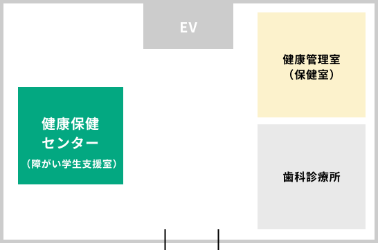 健康管理室は利用時のみ開室します。急な体調不良などで利用したいときは健康保健センター、もしくは学生支援課(本館4階)に連絡ください。