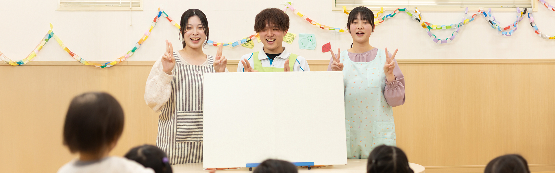 将来、子どもが絵本に夢中になるような読み聞かせをしたい。そう考える私にとって、「ときわんクニヅカ」で、先生や先輩方の読み聞かせを見学できたことが大きな学びになっています。間の取り方やスピードなどのポイント、子どもの反応をきちんと見る大切さを知り、読み聞かせの際に試しています。一方、子どもの年齢に応じて接する難しさを体感。先生や先輩がどのように接しているのかを観察・実践することで、自信がつきました。