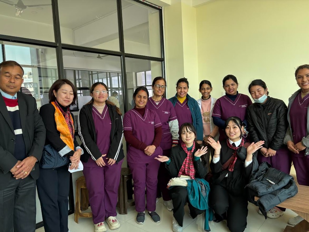 学生達はそれぞれのホストファミリー宅から研修拠点であるシバクチの学校に集合した後、ネパール医科大学(以降、NMC)へ移動し学内見学を行いました。NMCには、歯科衛生士が複数名勤務しており、口腔保健学科の学生に対しては、特別に交流の機会を設けていただき、教育体制や業務範囲の違いについて直接伺うことができ、大変貴重な機会となりました。その後、附属病院内の外来、病棟、救急部門を順に見学させていただきました。
