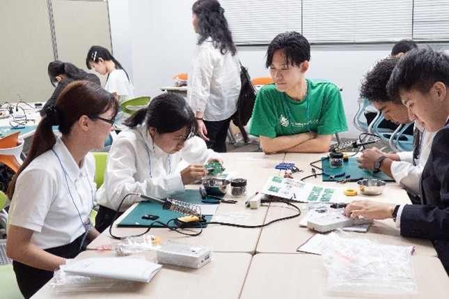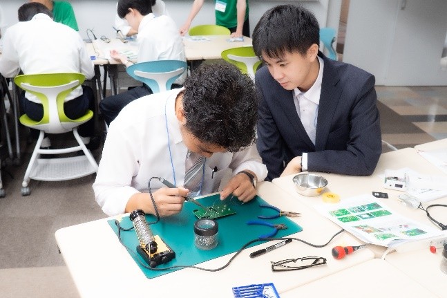 ハンズオンセミナーでは、はんだごてを用いて簡易線量計を作成