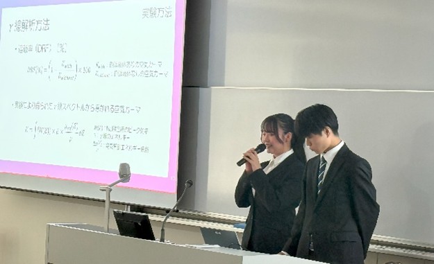 発表会では、1年間の研究成果を堂々と発表しました。質疑応答では専門的な質問も多く出ましたが、学生たちは真剣に考え、誠実に答えていました。また、会場には3年生も参加しており、先輩の発表する姿を見て、来年度に向けた具体的なイメージを持つことができたようです。