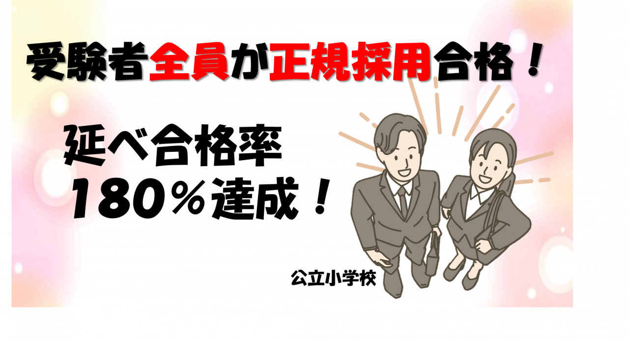 受験者全員が正規採用合格!延べ合格率180%達成!