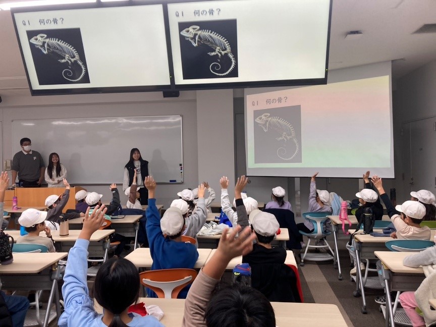 室内プログラムでは、動物の骨に関するクイズを通して体の仕組みに触れ、自分たちの骨を強くするための食事についても学習しました。屋外と屋内の双方で、多角的に学びを深める充実した時間となりました。