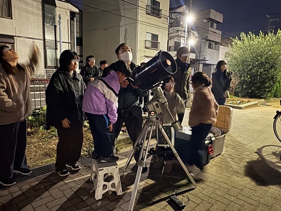2026.01.30 TOPICS 神戸常盤大学天文部がKITの子供たちへの星空観測会を実施しました 2025年12月19日(金)に、本学天文部が、本学子育て総合支援施設KITに通う子供たちを対象に星空観測会を実施しました。 KITにて惑星や星空の話を天文部の学生が子供たちに説明した後、近くの「ふたば学舎」の広場にて、星や土星の環などを望遠鏡で見てもらいました。 実物を自分の目で見てもらい、自然の神秘を感じてもらえたと思います。昨年度は曇りでしたので、そのリベンジとなりました。 観測会の様子 一覧へ戻る