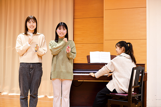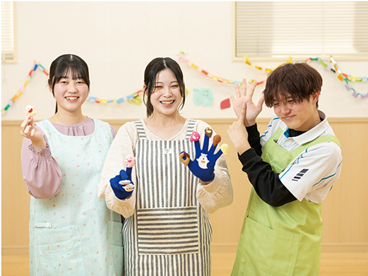 実際の保育場面を想定した模擬保育や地域の子育て支援活動など、多様な体験型授業や活動を通して、保育所・幼稚園・認定こども園の現場で求められるスキルや実践力を身につけます。