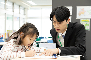 教員としての職務や児童に対する理解を深めるために、子育て総合支援施設「KIT」では1年次から3年間、小学生の学習支援に携わるとともに、保護者対応も体験。また2年次には週に1回程度、スクールサポーターとして神戸市内の小学校で、授業や行事などの指導補助を行い、授業の進め方や生活指導など、教職に必要な指導力の基礎を身につけます。