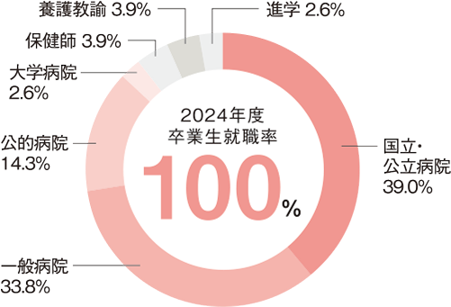 前身の短期大学も含め約1700名の卒業生が、兵庫県をはじめ日本各地の医療・教育現場で活躍中です。卒業生の中には、後輩の臨地実習指導を担当している人もいます。