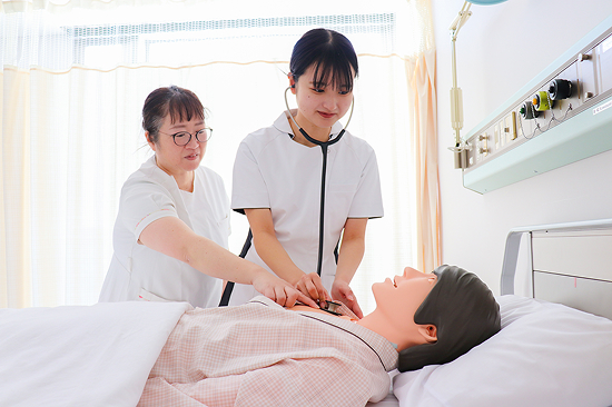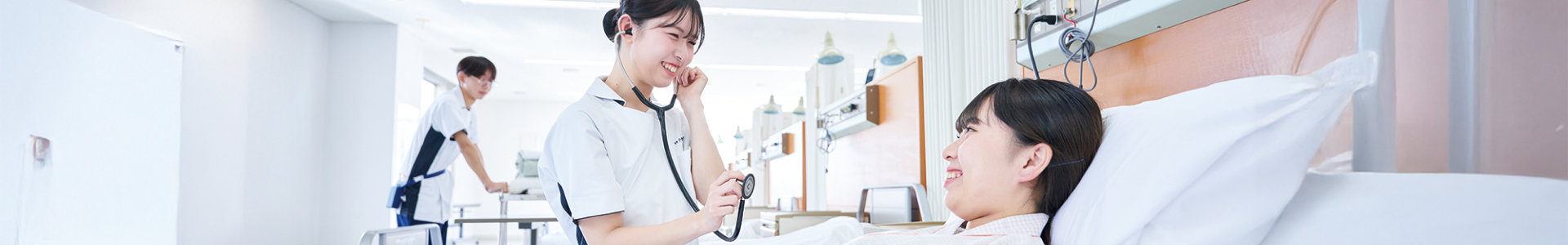 確かな技術と知識を基礎に、豊かな人間性を持った看護専門職の育成を目指しています。特に力を入れているのが臨地実習です。1年次の「地域ふれあい実習」に始まり、2年次「基礎看護学実習Ⅱ」、3年次後期からの「看護学実習」、4年次の「課題別総合実習」と領域別に学びます。また長田区と連携し、地域の人々との交流を通じ様々な体験を積み重ねられることも特徴です。