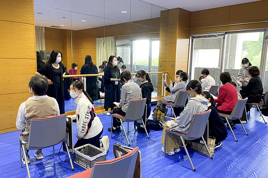 母性看護実践論では、実習を控えた3年生に出産場面と産まれたばかりの赤ちゃんへの看護について、4年生が主体なって企画運営をした授業が行われます。最初は緊張気味の後輩も、優しく具体的な先輩の指導に引き込まれていきます。4年生は、教えることの難しさを感じるだけでなく、後輩の熱心に聴いてくれる姿に、勇気や自信も得ることができ、3年生は身近な目標に出会える体験に繋がります。