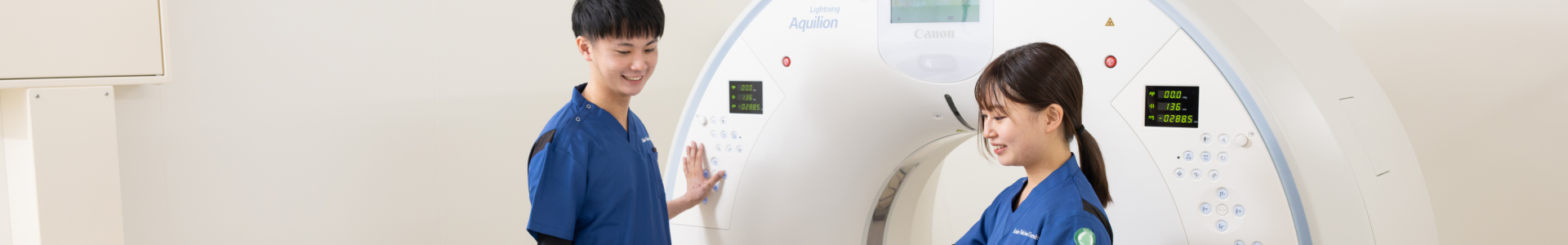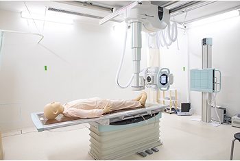 8号館の1階および2階に広がる12の実習室に、大手医療機器メーカーの最新機器が備わっています。医療現場で使用されている機器を実際に操作し、機器の性能、撮影技術、画像処理などを学修するために様々な実験・実習を行います。実習では、臨床経験が豊富な診療放射線技師をはじめ、放射線の取り扱いに熟達している教員が、きめ細かに指導します。講義で学んだ知識を実際に体験・実感することで、深い学びと実践的能力の育成につなげます。