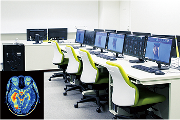 学生一人に1 台のPC で、画像処理や画像評価法の実習や、放射線画像解剖学の実習を行います。