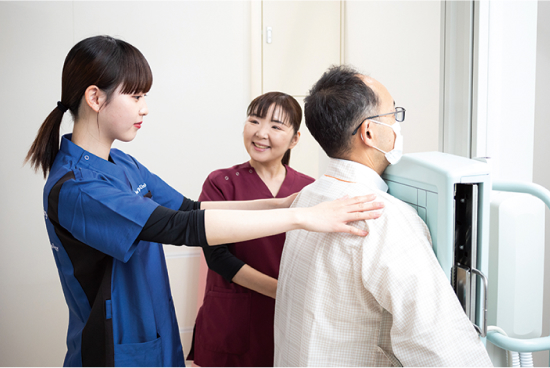 臨床実習前に身につけるべき技能や態度が備わっているかを評価する試験です。検査の確認から準備、説明、撮影までの一連の動作を確認します。