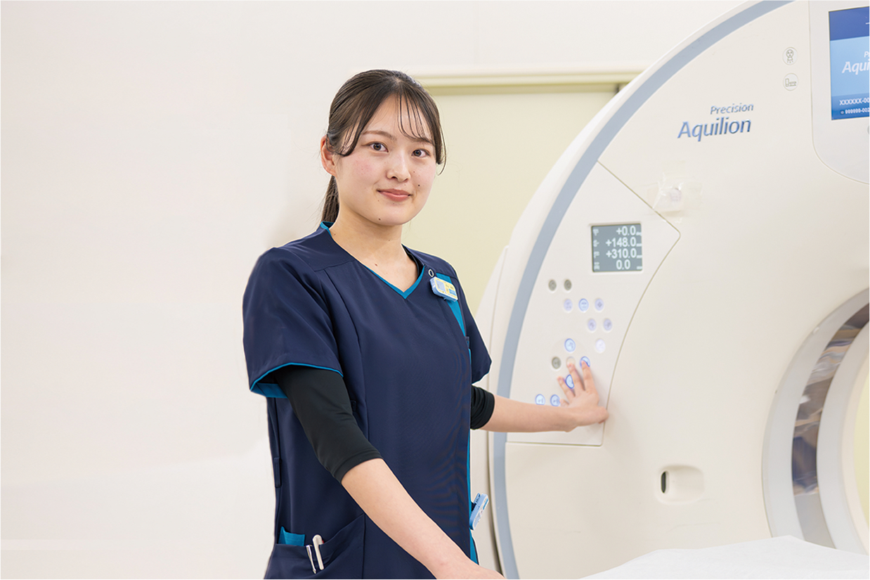 大学病院で、診療放射線技師として勤務しています。神戸常盤大学は実習重視で、実際の検査装置を操作する機会が豊富。特に、「画像解剖学演習」でCTやMRIの画像から病変を確認した経験が、仕事で役立っています。検査で心掛けていることは、患者さんの様子をしっかり見ること。一人ひとりに合わせ、説明の仕方や検査中の声掛けを工夫しています。またマンモグラフィの検査資格も取得し、患者さんのニーズに応えていきたいです。